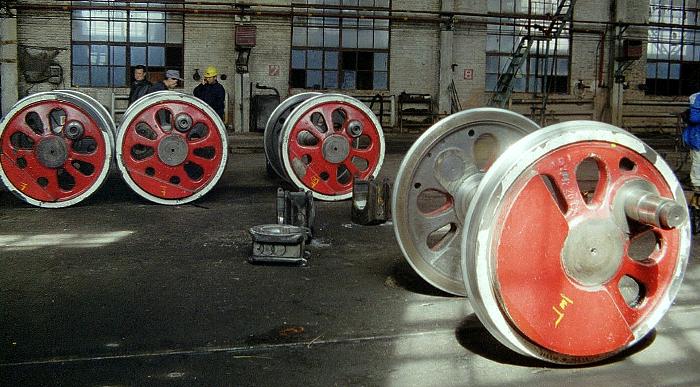 We walked through the shop finding SY 2-8-2 engines 0463, 0271, 6245 and 1025 cold and 0766 hot in the shop. #1083 was outside having some work done on either the engine brakes or the valve motion, it was hard to tell. At one point, the engineer hauled out the throttle so the drivers spun wildly, sending a great exhaust plume into the air.